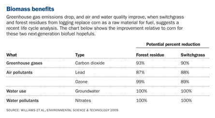 Several studies attest to the benefits of fuels made from such feedstocks, although the degree of benefit varies depending on what factors are included in the analysis. Overall, dedicated energy crops such as switchgrass and waste residues from sources like commercial logging fare better than corn-based ethanol, concludes a recent modeling analysis and literature review citing more than 100 papers. Published online May 27 in Environmental Science & Technology, the analysis reports that municipal waste-based ethanol production emits an estimated 60 to 80 percent less greenhouse gas than corn-based ethanol production. Dedicated energy crops, especially when grown on marginal land, also fare better than corn in terms of greenhouse gas emissions, and require less water and generate less air pollution, report researchers from the National Renewable Energy Laboratory in Golden, Colo., and E Risk Sciences in Boulder, Colo.
