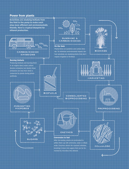 Many scientists have expressed concern that political support for the biofuels industry has outpaced rigorous analyses of the fuels’ potential impacts. Others see this notion as manure. Research needed to resolve that disagreement is now underway, as scientists in industry, national labs and universities across the country are assessing every aspect of these fuels, from field to tailpipe. Researchers are growing crops, evaluating yields and comparing harvesting techniques. Computer models are providing stats on each crop’s effect on environmental factors such as soil nutrients and erosion. The plant cell wall is under attack from several angles. And chemists and microbiologists are cajoling an expanding menagerie of microorganisms into producing higher fuel yields.