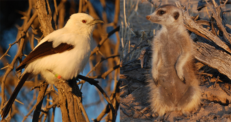 When food gets scarce, African birds called fork-tailed drongos (Dicrurus adsimilis) watch for a meerkat or other forager to find desirable prey such as a plump grub. The drongo calls out an alarm as if a predator were approaching. The forager often drops its prize and dashes for cover. Then the drongo swoops in and steals lunch.