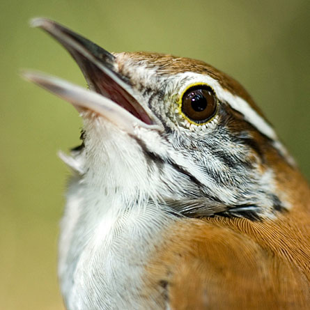 In Costa Rica, the team tracked dueting rufous-and-white wrens, Thryothorus rufalbus. The partners often sang overlapping phrases while separated by as much as 140 meters in their dense, forested home. When dueting far apart, partners tended to move closer to each other.