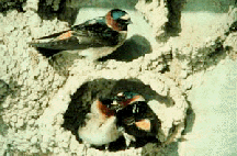 When cliff swallows migrate back to Nebraska for the summer, some return to the colony site of their birth, but others don’t. Examining about 2,500 banded birds that grew up in their birth parents’ nests, the Browns found that their adult choice of colony size resembled parental choice.