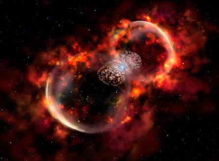 Unlike a wind-driven event, an explosion “implies that there is some sudden burst of energy deep inside the star,” Smith says. “It may be related to the rate of fuel consumption as a massive star nears the end of its life.”