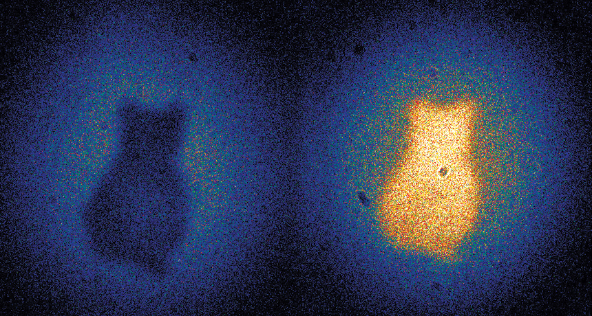 Exploiting the same quantum quirk that spawns Schrödinger’s undead cat in the famous thought experiment, a research team snapped a portrait of a cat-shaped hole in cardboard without collecting any light bouncing off the two-dimensional kitty. This blind camera, comprising lasers and crystals, could help scientists illuminate microscopic worlds difficult to picture using existing techniques, the team reports in the Aug. 28 Nature.