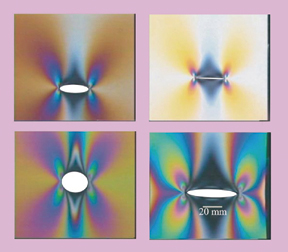 TENSE SCENE. In the polymer PVB (left), a horizontal crack transforms into a hole (white).