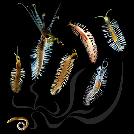 Remotely operated vehicles found seven new species of worms at depths around 1,900 meters and deeper off the coasts of California, Oregon and the Philippines. Cameras caught the worms, some of which were several inches long, swimming forward and backward above the ocean floor, propelled by wriggling fans of bristles.