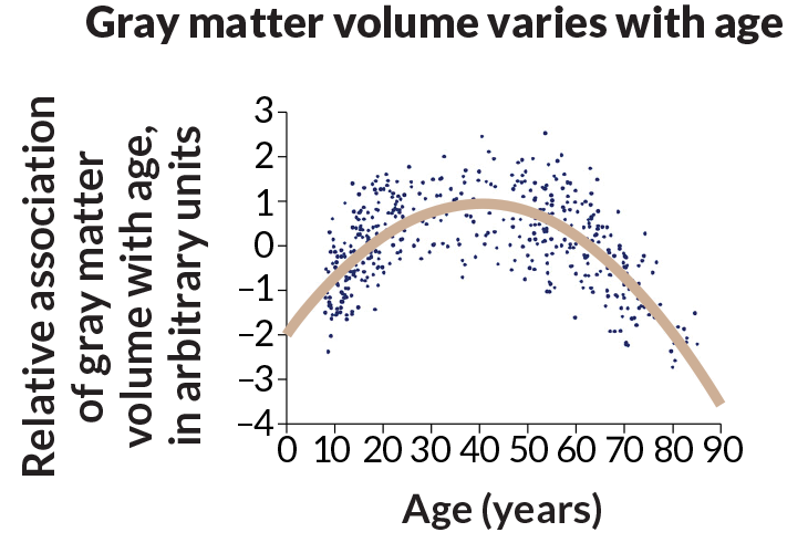 These slow-to-grow brain networks are the first to go in old age, neuroscientist Gwenaëlle Douaud of the University of Oxford and colleagues found. Networks of nerve cells (the gray matter) are guided by a “last in, first out” rule, brain scans of 484 people from 8 to 85 years of age indicate. “What we show is a precise mirroring for these regions,” she says.