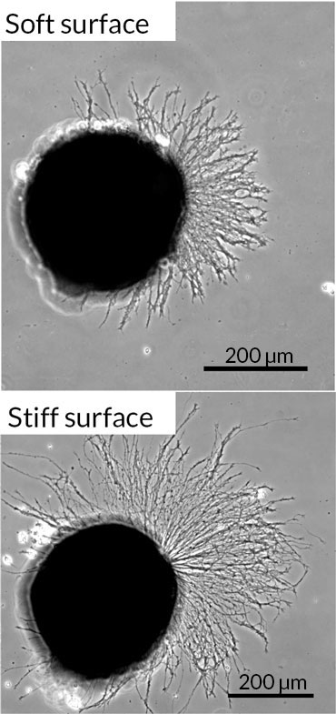 Stiffness, softness determine if nerve cells’ axons take straight or meandering path