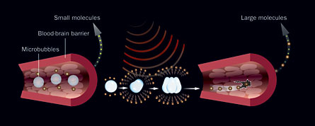 But researchers have been making inroads, finding ways to slip larger molecules into the brain’s tissue. Those deploying microscopic bubbles and ultrasound—sound waves above the audible range—to squeeze drugs through vessel walls and into the brain are leading this trend. The method has been tested only in animals so far. But if perfected, the technique could combat diseases like Alzheimer’s, Parkinson’s and cancer.