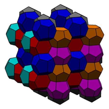 It took more than a century, but finally two physicists, Denis Weaire and Robert Phelan of TrinityCollege in Dublin, realized that Nature herself had been performing experiments to answer Kelvin’s question. A whole family of natural chemicals called clathrates form lattice structures with many of the properties a good foam shape should have. By examining Nature’s repertoire of clathrates, Weaire and Phelan spotted a shape for foam that beat Kelvin’s.