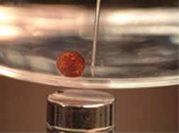 When the researchers squirted a drop of water into a petri dish containing the dust and an oily solution, the particles coated the drop with their hydrophilic sides facing inward and their hydrophobic sides facing the surrounding oil. The drop then resembled a red disco ball. With a handheld magnet under the petri dish, the researchers moved the drop in all directions across the surface. On a chip, a magnet could direct a drop to different chip locations for various steps of a reaction, says Sailor.
