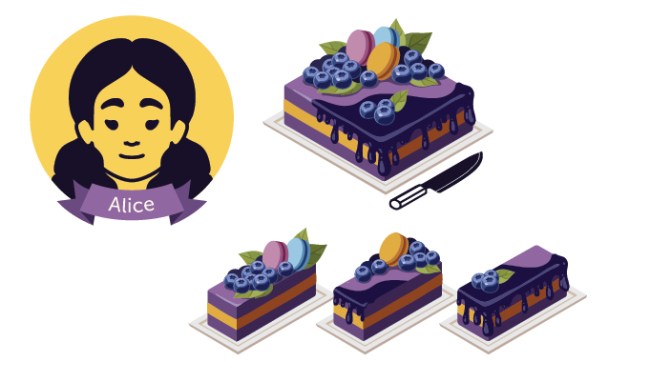 The cake serves as a metaphor for anything that can be divided, like land, time or limited resources.