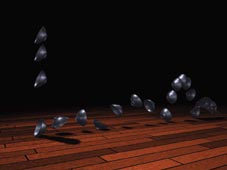 Some everyday phenomena, such as moving fluids, act in an even more complicated and difficult-to-compute manner. To make images of them look real, animators have turned to more-specialized tools. “For amorphous things like water, clouds, smoke, and pieces of Jell-O, there seem to be two approaches,” notes ex-academic Hugh Reynolds, who cofounded the physics-based animation company Havok in Redwood City, Calif., in 1998. “One [approach] is to try to come up with a big, mysterious equation that represents all this stuff. The other is to think of it as a big cluster of chunks,” he explains. The latter–a spinoff from the field known as computational fluid dynamics–is the more practical of the two, and the one that animation scientists have embraced.