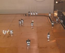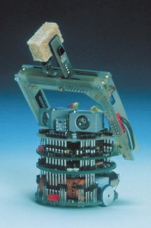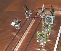 In their experiments, the team used up to 12 miniature, mobile Khepera robots, developed at the Swiss Federal Institute of Technology in Lausanne. Just 55 millimeters in diameter, each robot was programmed to roam a 9-square-meter area to search for tokens representing food and bring them back to a base station, the equivalent of a nest.