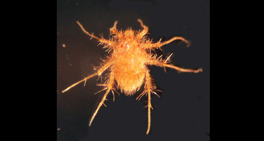SPEEDY LEGS The California mite Paratarsotomus macropalpis can outpace Usain Bolt and even a cheetah in terms of body lengths per second.