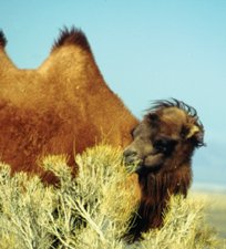 The wild camel is the largest grazer of central Asia’s deserts. Most biologists consider it the direct descendant of the ancestor of the domesticated two-humped species. Some think that today’s one-humped dromedary also derived from this two-humped camel ancestor. Possible interbreeding of the wild species and the domesticated Bactrian camel has contributed to confusion about the animals’ identity.