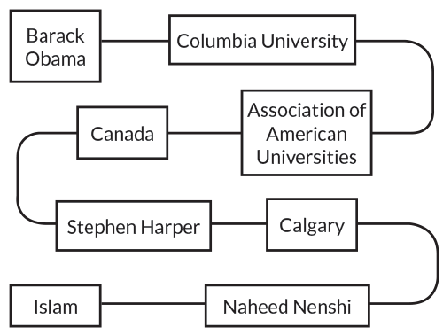 Take the false assertion “Barack Obama is a Muslim.” There are seven degrees of separation between “Obama” and “Islam” in the noun network, including very general nouns, such as “Canada,” that connect to many other words. Given this long, meandering route, the automated fact-checker, described in 2015 in PLOS ONE, deemed Obama unlikely to be Muslim.