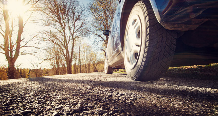 TREAD LIGHTLY Tiny pieces from rubber tires, brake pads and asphalt make up most of the airborne microplastic pollution around three German highways, a study finds.