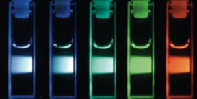 Unlike the fluorescent colors of quantum dots, the colors emitted by the new carbon dots depend on the color of light that the researchers use to excite them.