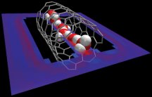 Using computer simulations, Gerhard Hummer of the National Institutes of Health in Bethesda, Md., and his colleagues have shown that water molecules will quickly enter and flow through a carbon nanotube just 8 nanometers in diameter. A separate set of simulations shows that certain organic molecules also will course through such nanotubes.