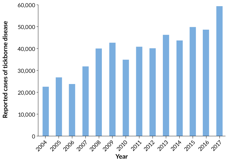 Number of tickborne disease cases in the U.S. (2004–2017)
