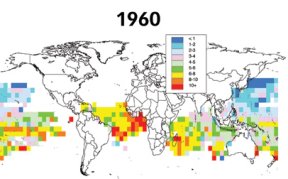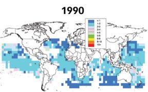 Long after some fish stocks sank below their maximally productive sizes, fisheries’ hauls continued to rise, says Pauly. As certain fishes became rare and individual fisheries–such as those that harvest California’s sardines and New England’s cod–collapsed, commercial fishers turned their attentions elsewhere. The discovery of more abundant fish stocks in less exploited waters masked for decades the falling yields of populations and species.