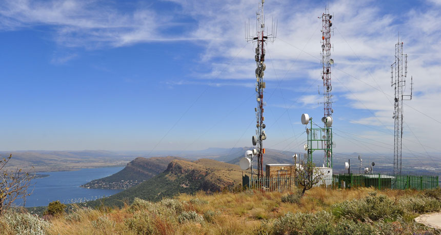 RAIN CHECK Weakened signals during storms from cell phone broadcast towers like these helped scientists monitor African rains.