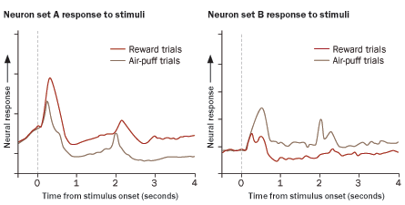 “These neurons were not registering whether something aversive was surprising,” Salzman says, suggesting they play a specialized role in rewarding surprises.