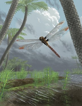 The Carboniferous abundance of oxygen enabled insects and other arthropods, which get their oxygen via diffusion through holes in their exoskeleton, to grow to immense proportions, says Robert A. Berner, a geophysicist at Yale University. Models of insect physiology suggest that the higher atmospheric concentrations of oxygen, as well as the increased air pressure that resulted, would have increased the diffusion rate of oxygen into an insect’s bloodstream as much as 67 percent.