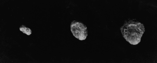 Careful analysis of the images later revealed this oddly shaped, pock-marked satellite to be nearly twice as long as it is wide, measuring about 380 by 290 by 230 kilometers. It was, indeed, the most irregularly shaped of the major satellites.