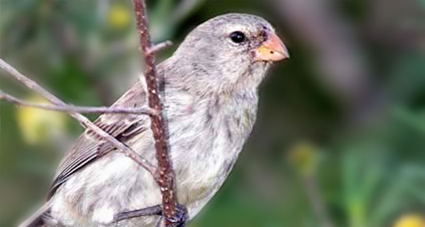 TELL DARWIN Crossing species lines and mating with the small tree finch (yearling shown) may be the undoing of a second species of Darwin’s finches in the Galápagos Islands.