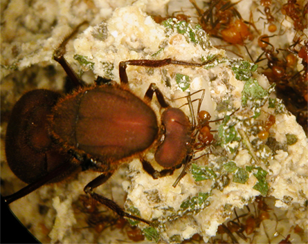 Nitrogen-fixing bacteria turned up in the majority of 80 ant colonies representing eight species of Attini leaf-cutter ant, the researchers said. Sampling required digging up parts of the colonies as the ant soldiers swarmed out of the ground slicing at the raiders. “They can cut through leather,” says coauthor, microbiologist and digger Garret Suen, also of UW–Madison. He wears rubber boots for ant collection.