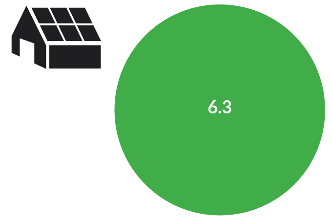 Assumptions: Household uses 10,700 kilowatt hours of electricity per year and 100 percent of electricity comes from a clean energy provider or from solar panels