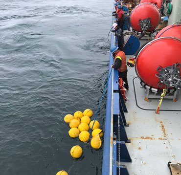 The group set up more than 55 moorings, or lines of sensors tethered to the seafloor along two main transects — one stretching west from Greenland across the Labrador Sea, and one stretching east to Scotland.