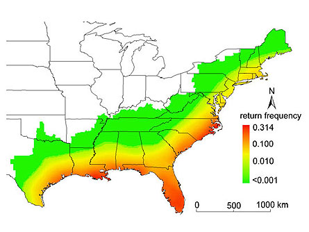 From 1851 to 2000, hurricanes and tropical storms affected forests from central Texas to New England — a swath that covers about 1.75 million square kilometers — but particularly afflicted the southeastern United States, the researchers note. About 1 percent of the total area studied experienced hurricane-force winds, on average, at least once every 50 years.