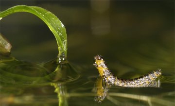 In effect, the insect creates tiny menisci with its front and rear legs. Because menisci are attracted to other menisci, the net effect is to pull the insect up the slope at the water’s edge. These creatures can reach speeds as high as 30 body lengths per second.