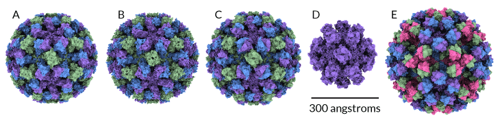 “Even ones that are the same size have quite a few differences,” says Joshua-Tor, who is also a Howard Hughes Medical Institute investigator. Spikes or knobs studding the virus shells are twisted differently in each strain, she says, though it’s not yet clear if those twists might influence how the virus infects cells.