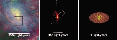 Although astronomers have had several indirect lines of evidence supporting the model, telescopes haven’t had the resolution to detect any of the proposed dust veils. A new interferometer combining infrared light collected by two of the Very Large Telescope’s four 8-meter telescopes in Paranal, Chile, has finally provided a view that’s sharp enough. A belt of dust about 11 light-years across and 7 light-years thick surrounds a supermassive black hole at the core of the galaxy NGC 1068, Walter Jaffe of Leiden University in the Netherlands and his colleagues report in the May 6 Nature. That galaxy lies 50 million light-years from Earth.