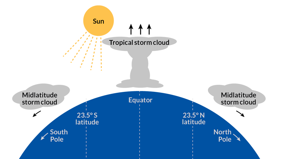 A related pro-warming effect results as warming at the equator expands the rotating cells of dry air that maintain Earth’s low-latitude deserts. Scientists expect these expanding cells to push midlatitude storm tracks toward the poles, widening the low-latitude cloudfree belts where most planet-warming sunlight strikes. “Your cloud is essentially giving you less bang for your buck,” explains Mark Zelinka, who studies cloud feedbacks at the Lawrence Livermore National Laboratory in California. A recent analysis of more than 30 years of weather data by Zelinka’s colleagues Kate Marvel and Céline Bonfils provided evidence that storm tracks are in fact moving poleward (SN Online: 11/11/13).