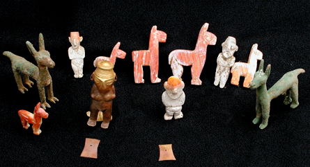 An additional child interred about 3 meters from the others lay near a silver figurine of a man adorned with a shell headdress and cloth fragments. Miniature gold, silver and shell figurines of men and llamas surrounded the larger figurine.