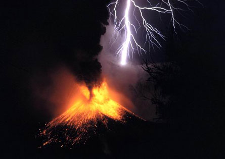 Physicists have long puzzled over why sand grains and other small particles can build up electrical charges as they collide with one another, sometimes to the point of discharging lightning in dust storms or plumes of volcanic ash. Now, a paper appearing online April 11 in Nature Physics suggests that particles transfer electrical charge vertically during a smashup, such that positive charges move downward and negative charges move up in the cloud.