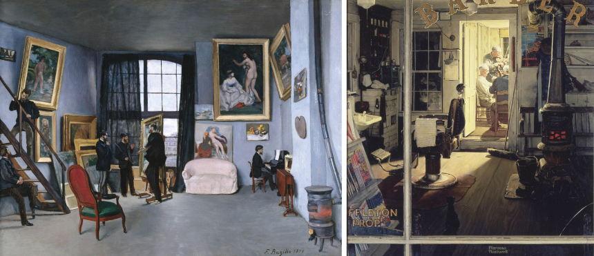 Wikimedia Commons; Shuffleton’s Barbershop © SEPS by Curtis licensing, Norman Rockwell Museum Digital Collection