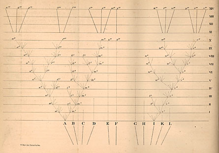 Among its many prose-filled pages, Charles Darwin’s On the Origin of Species includes only one illustration. It’s a diagram of short lines leading upward from the base — a few lines at the bottom branch out repeatedly as they extend up. Darwin meant for the image to depict what he dubbed the “tree of life.” This figure embodied Darwin’s vision for how the tremendous diversity of life on Earth arose. A few species — the base of the tree — mutate and evolve over time, sometimes branching to form new species. An ancient species of bird might colonize a chain of islands and slowly evolve narrower beaks or other features specialized for the birds’ new habitats. Eventually, groups in different habitats become separate species, and each species continues to evolve and adapt, perhaps branching again. In this way, the first fishlike land animals gave rise to the great diversity of amphibians, lizards, insects, rodents, marsupials, primates and birds.