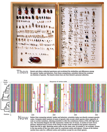It was a sweeping vision of life, revealing it to be a giant family with a vast genealogy. Branches of the tree show the kinship among creatures and the history of change and adaptation. Darwin toiled for much of his life to understand the relationships among species, the branches of this immense tree, by gathering countless specimens and scrutinizing their similarities and differences — a longer neck, a brighter-colored shell. Expanding this tree has been the painstaking work of generations of naturalists, biologists, taxonomists and paleontologists during the 150 years since Darwin published his seminal book.