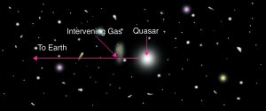 Using one of the world’s largest telescopes, a team of Australian, British, and U.S. astrophysicists observed clouds of gas in space backlit by beams of radiation from ancient, superpowerful quasars.
