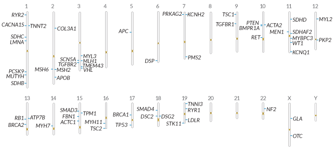 People inherit two copies of most genes — one from mom, one from dad. Many of the variants on the list of 59 genes cause trouble when just a single copy is inherited from one parent. Geneticists refer to such genetic variants as “dominant.”
