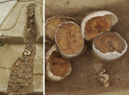 Pottery resting among the bones accumulated over no more than a few decades, the researchers say. Some pieces came from Neolithic sites located 400 kilometers from Herxheim.