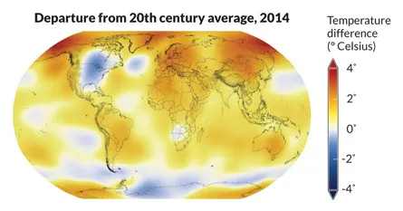 The continental divide of 2014 temperature