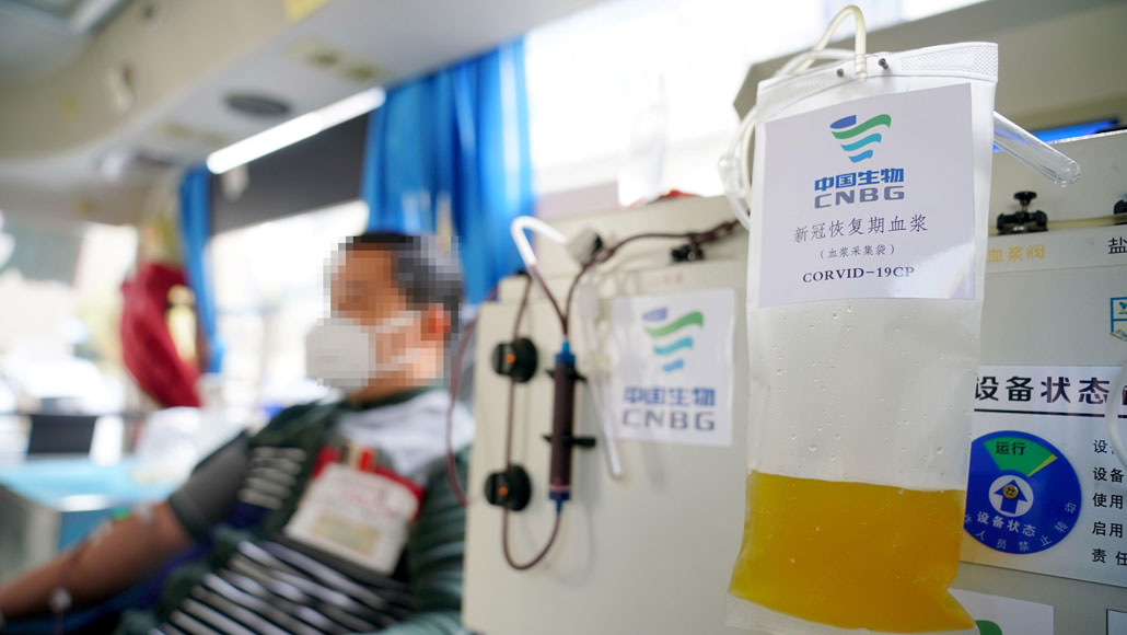 A patient in Xingtai, China, who has recovered from COVID-19 donates plasma, the liquid part of blood, which contains antibodies against the coronavirus.