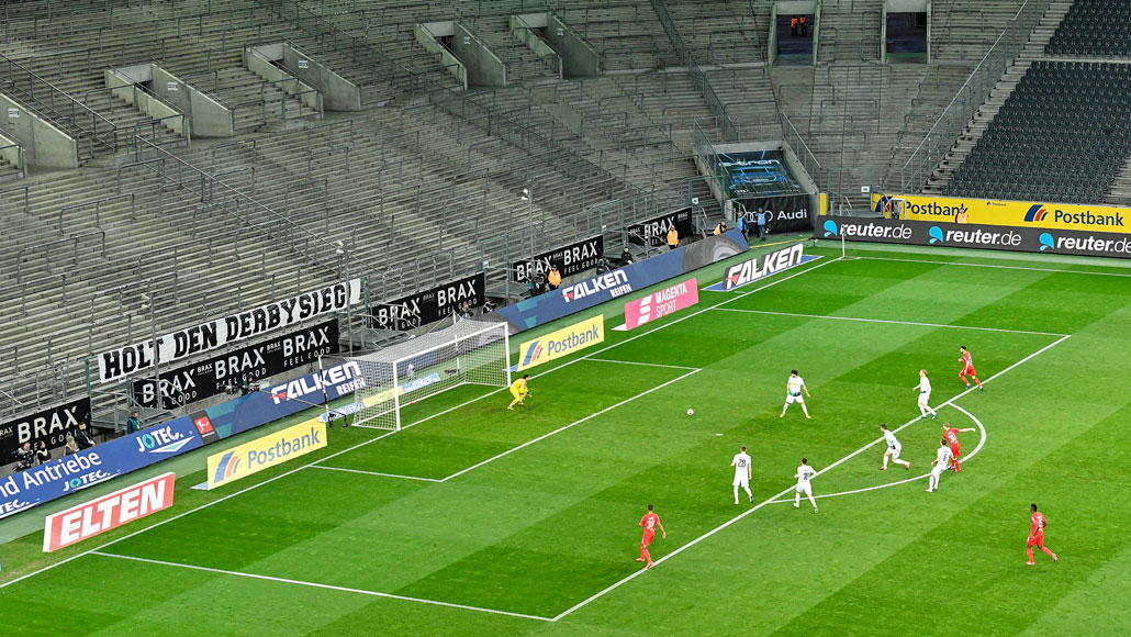 Health experts say social distancing measures like cancelling public gatherings are key to fighting the spread of the coronavirus. Some sports games, like this March 11 soccer match in Moenchengladbach, Germany, are now being played in stadiums without fans.
