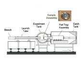 To figure out whether amino acids can withstand pressures of up to 200,000 times that of Earth’s atmosphere and temperatures of 500 to 600C, Blank and her colleagues created some of the best physical simulations so far. In each trial, they encased a solution of amino acids in a stainless steel, nickel-size disk and put the disk in a large tank. They then shot it with a metal-tipped projectile that traveled at nearly 2 km per second, or 4,500 miles per hour. Blank says that the first apparatus they used looked like a 3-ton cannon. The Chicago fire marshals were not pleased, she recalls.